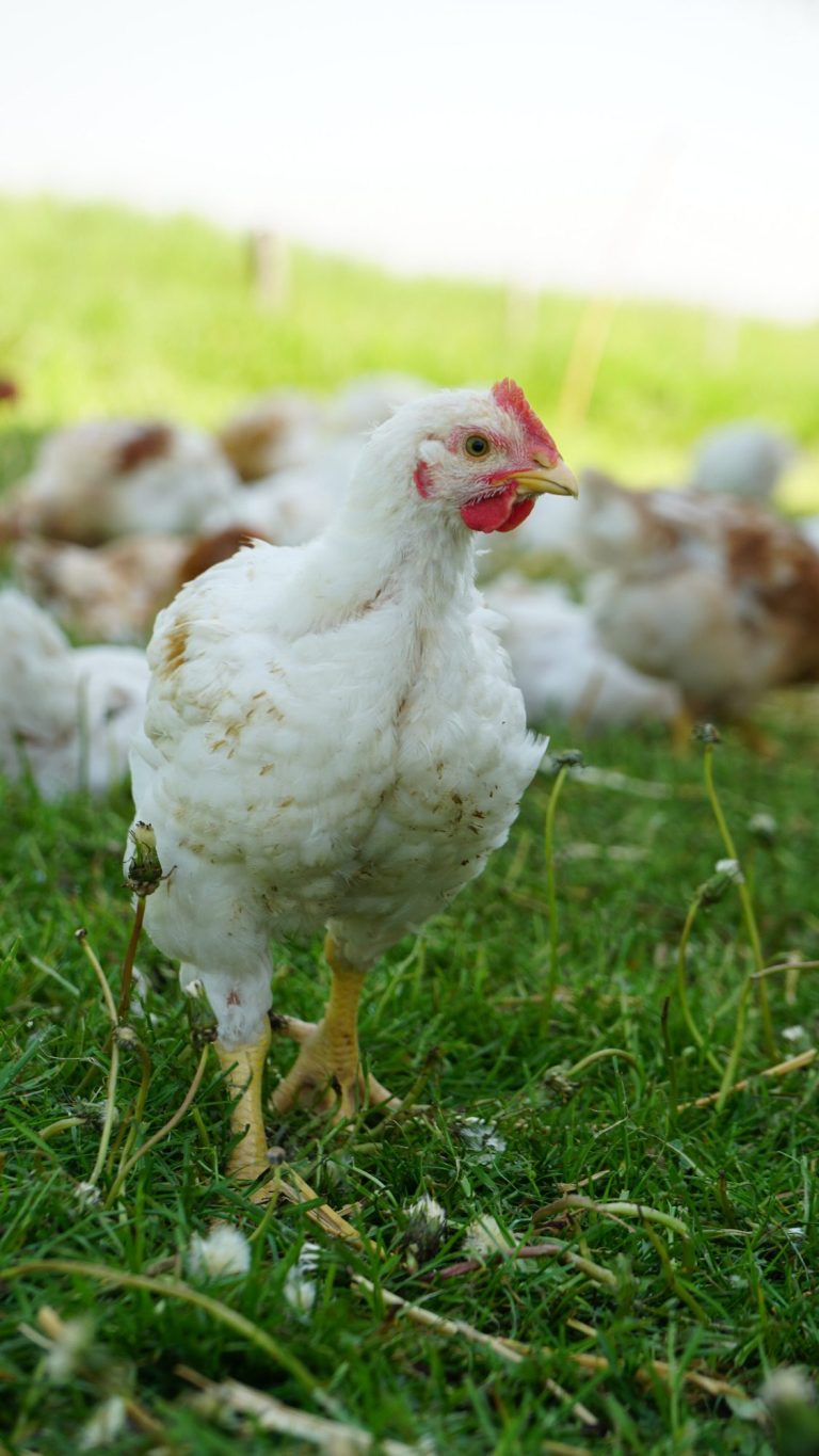 Unsere Hähnchen leben in mobilen Ställen auf wechselnden